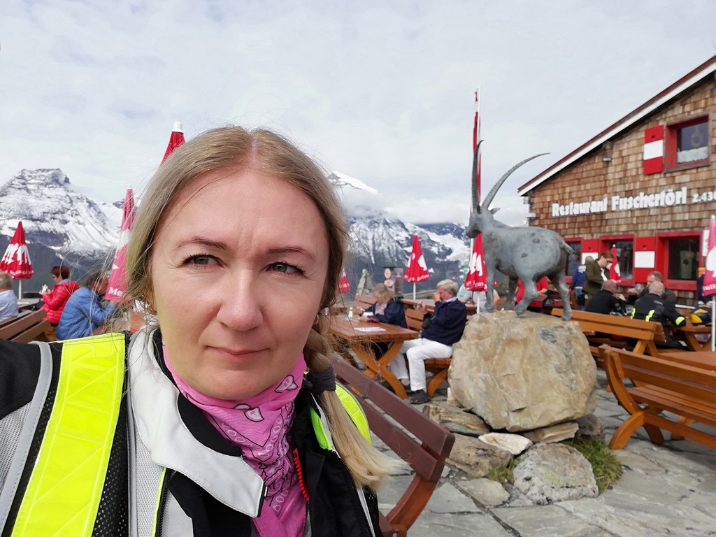 Po przerwie na kawkę i ciastko atakujemy szczyt Edelweissspitze (2571 m n.p.m.). Jest to najwyższy punkt naszej podróży. Wjazd na sam szczyt ograniczony jest tylko do samochodów osobowych i motocykli. Nawierzchnia znacznie gorsza gdyż wykonana z kostki. Droga jest węższa niż reszta trasy a zakręty bardziej ciasne. Ze szczytu rozpościera się wspaniały widok na inne góry, w tym na najwyższą górę Austrii – Großglockner (3798 m n.p.m.).