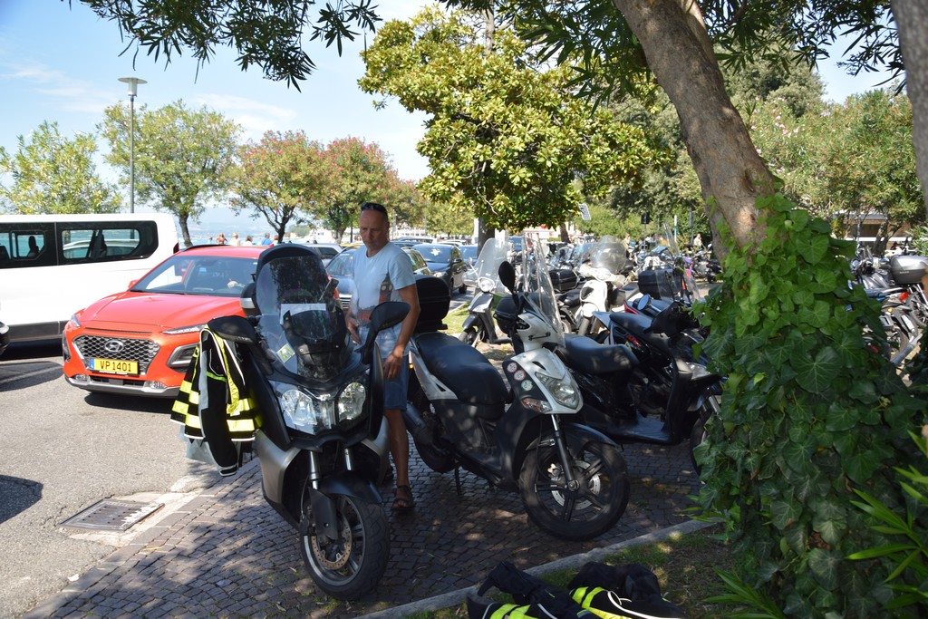Nauczeni doświadczeniem z Sirmione, z pewnym niepokojem zostawiamy skutiego. Pocieszający jest fakt, że stoją tutaj inne motocykle z rejestracjami z różnych krajów więc może faktycznie „no problem”.