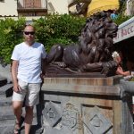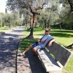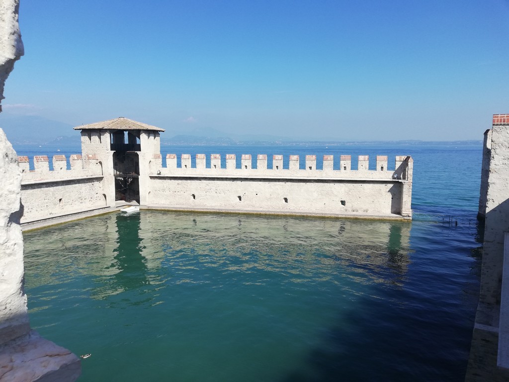 Poranne krzątanie zajęło nam dużo czasu i finalnie dopiero bliżej południa ruszamy w kierunku miasteczka Sirmione. Położone jest ono na końcu wąskiego cypla daleko wchodzącego w jezioro Garda. Pierwszy raz spotykamy się z problemem z zaparkowaniem skutiego. W końcu udaje nam się trafić na parking dla motocykli i jedną miejscówkę dla naszego pojazdu. Pełni euforii ruszamy na zwiedzanie pierwszego włoskiego miasteczka. Pomimo września ludzi jest dużo ale udaje się znaleźć mniej zatłoczone uliczki i napawać się „włoskimi klimatami”. Aby tego jeszcze mocniej doświadczyć, siadamy w kafejcie na małą czarną (precyzując: żona pije czarną a ja z mleczkiem 🙂 ).