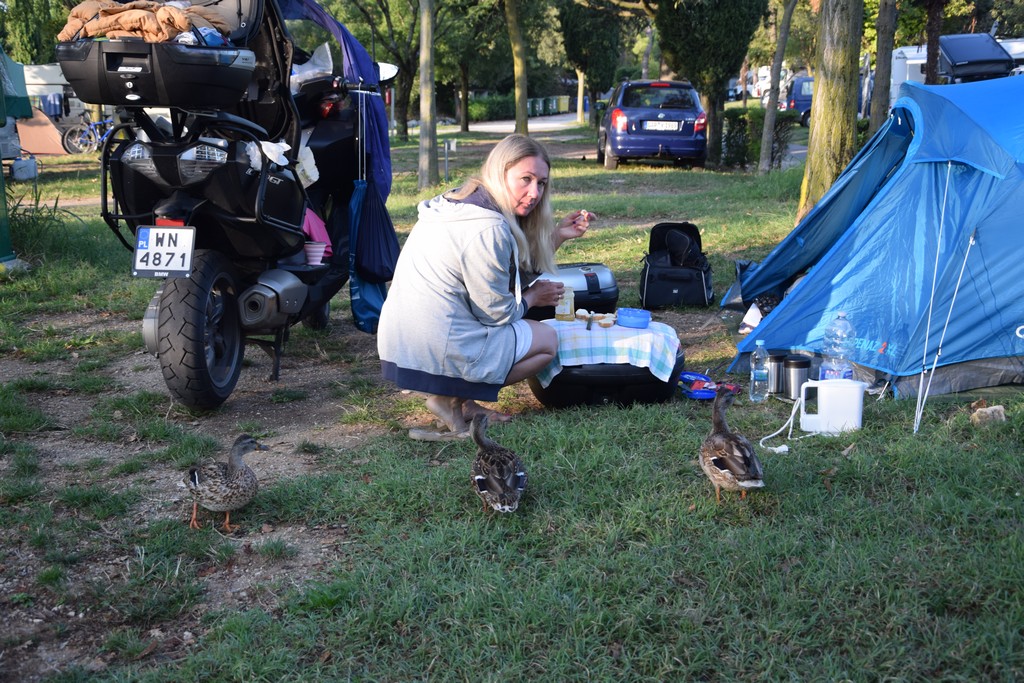 Na kemping San Biagio docieramy dopiero około 21-wszej. Recepcja jest już zamknięta i na kemping wpuszcza nas stróż nocny, który pozwala rozbić namiot tuż za recepcją. Mrok nie ułatwia nam tej czynności, szczególnie że namiot rozstawiamy pierwszy raz po cztero-letniej przerwie. W końcu jednak sukces i mamy gdzie spać.