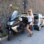 Na dojeździe do Positano jak i przez całe miasteczko, gdzie obowiązuje jeden kierunek ruchu, ciągnie się jeden wielki korek. Jest już druga połowa września a wszystko stoi. Zupełnie nie jestem sobie w stanie wyobrazić jak to wygląda w pełni sezonu. Na szczęście dzisiaj bez bagażów więc możemy pozwolić sobie na „włoski styl jazdy” i wykorzystać możliwości jakie daje jednoślad 🙂