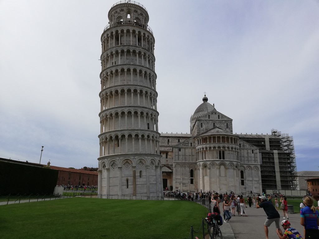Dzisiaj kolejny piękny dzień. Rano odwiedzamy pobliski kościół i jedziemy do Pizy. Na miejscu udaje nam się znaleźć miejscówkę w obrębie „białych linii”, gdzie ponawiamy patent z przypięciem ciuchów motocyklowych do skutiego. To kolejne miejsce gdzie przekonujemy się, że jednoślad to zdecydowanie lepszy sposób na zwiedzanie niż samochód dla którego nie byłoby miejsca tak blisko głównych atrakcji turystycznych.