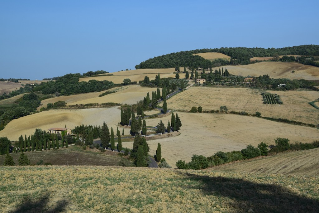 Dojeżdżając do Monticchiello odbijamy trochę w bok aby obejrzeć kolejną drogę obsadzoną cyprysami – „cyprysowa sprężynka”. Val d’Orcia oferuje wiele takich wspaniałych widoków. Planując naszą podróż starałem się trafić do miejsc, które były opisane na blogu Italia by Natalia (więcej można znaleźć we wpisie Dolina Val d’Orcia – najpiękniejsze punkty widokowe w Toskanii).