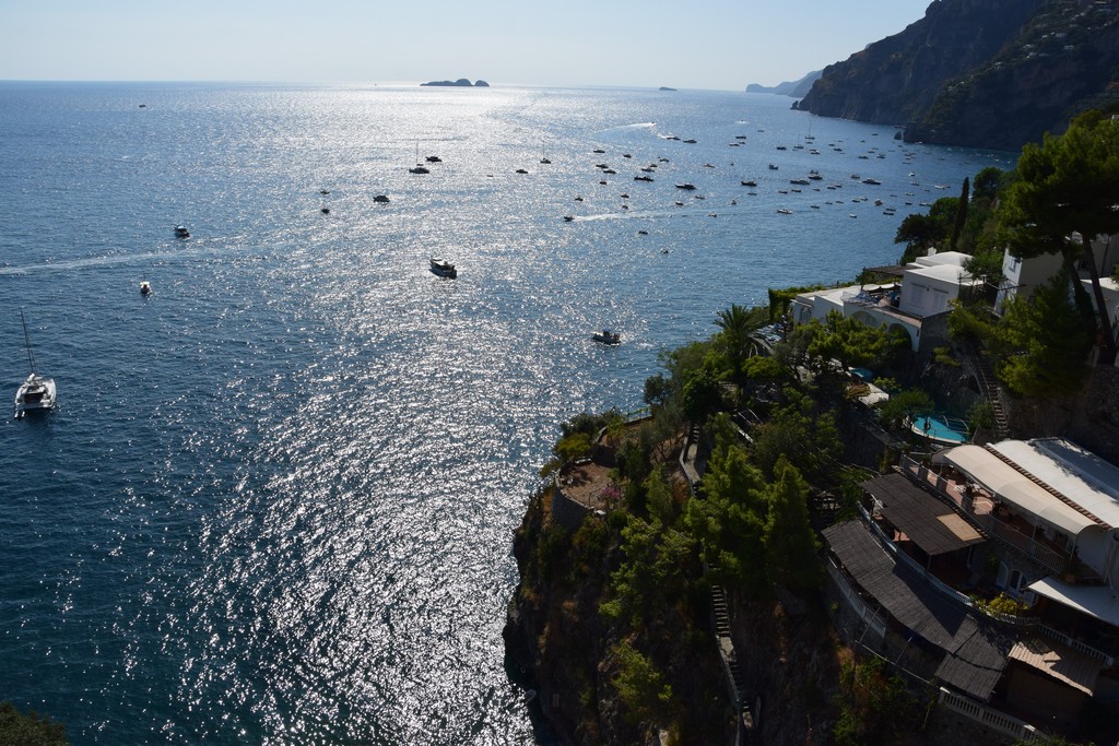 Przejeżdżając przez miasteczko wypatrujemy miejsca gdzie możemy zaparkować. Niestety wszystkie miejsca obmalowane są żółtą linią, co oznacza, że dla nas są niedostępne. Przejeżdżamy przez całe Positano i nie udaje nam się niczego znaleźć. Obwodnicą wracamy do początku i finalnie zostawiamy skutiego na parkingu płatnym (3EUR/h – w sezonie 6EUR/h).