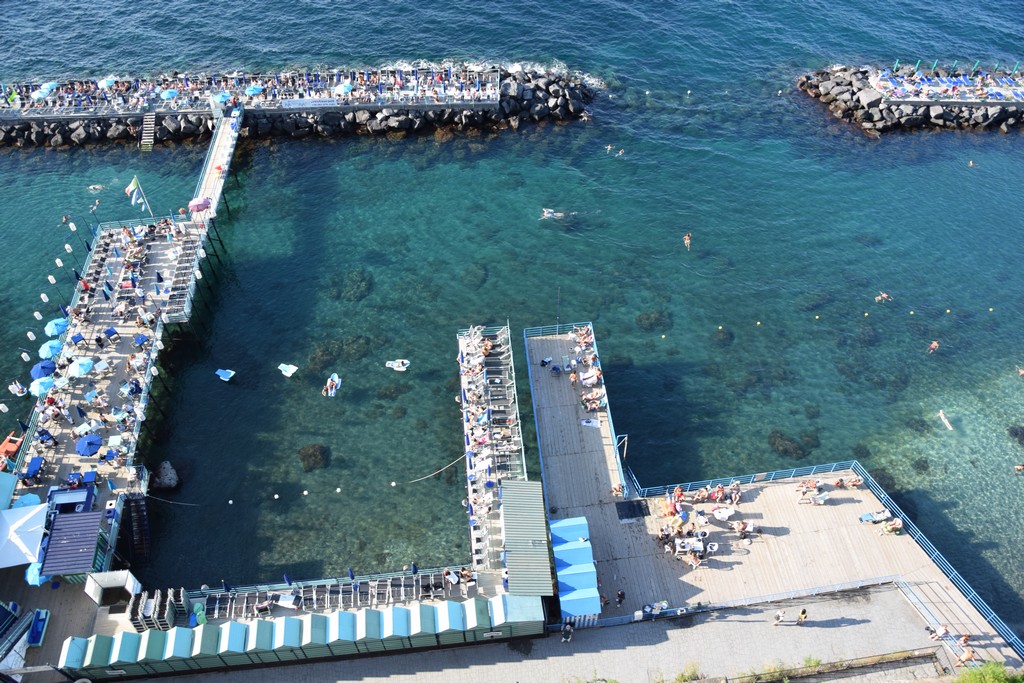 Zwiedzamy przechadzając się większymi i mniejszymi ulicami. Odwiedzamy kilka polecanych atrakcji turystycznych. Z wysokiego klifu na którym położone jest miasto obserwujemy w dole osoby opalające się na pomostach. W Sorrento praktycznie nie ma plaży i zastępują ją właśnie te pomosty.