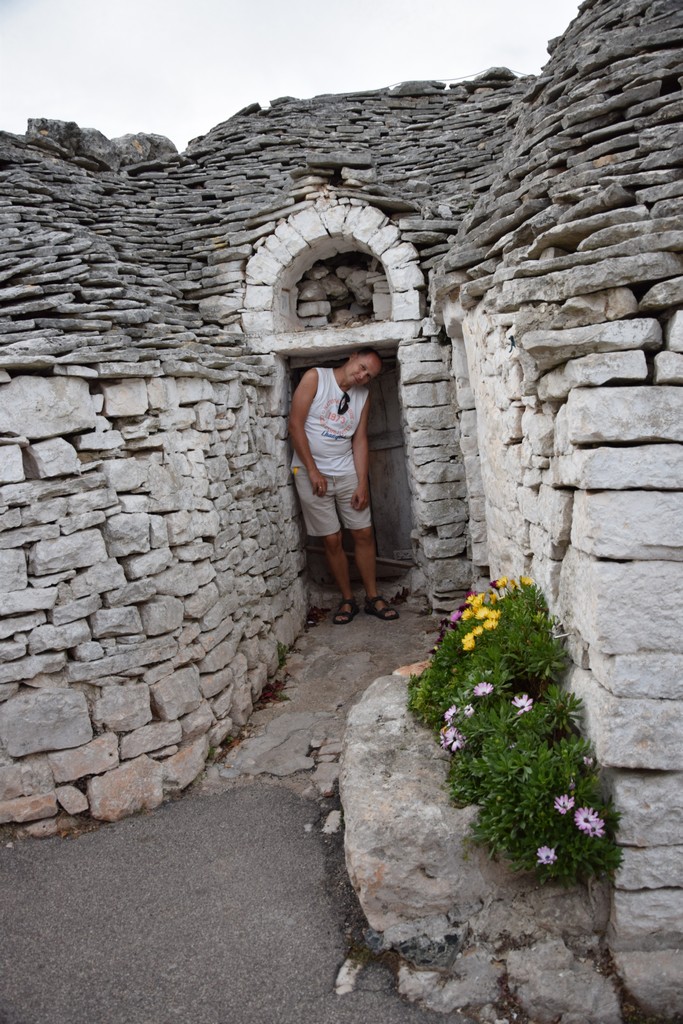 Alberobello to drugi punkt programu dnia dzisiejszego. Dojeżdżamy na miejsce i zapuszczamy się w uliczki przy których znajdują się unikatowe domki, tzw. trulli. W pierwszym skojarzeniu przywodzą one na myśl domki smerfów 🙂 Zwiedzanie rozpoczęliśmy od dzielnicy Rione Aia Piccola i choć jest to dzielnica w której znajduje się mniej domków, to naszym zdaniem jest ona bardziej klimatyczna. Po drugiej stronie głównej ulicy (Largo Martellotta) znajduje się większa dzielnica Rione Monti. Na uliczkach jest jednak większy tłum ludzi i z każdego zakątka zalatuje komercją. Idąc w głąb tej dzielnicy wijącymi się pod górę uliczkami, dochodzimy do kościoła Sant’Antonio di Padova, który jest zbudowany również w „stylu smerfowym”.