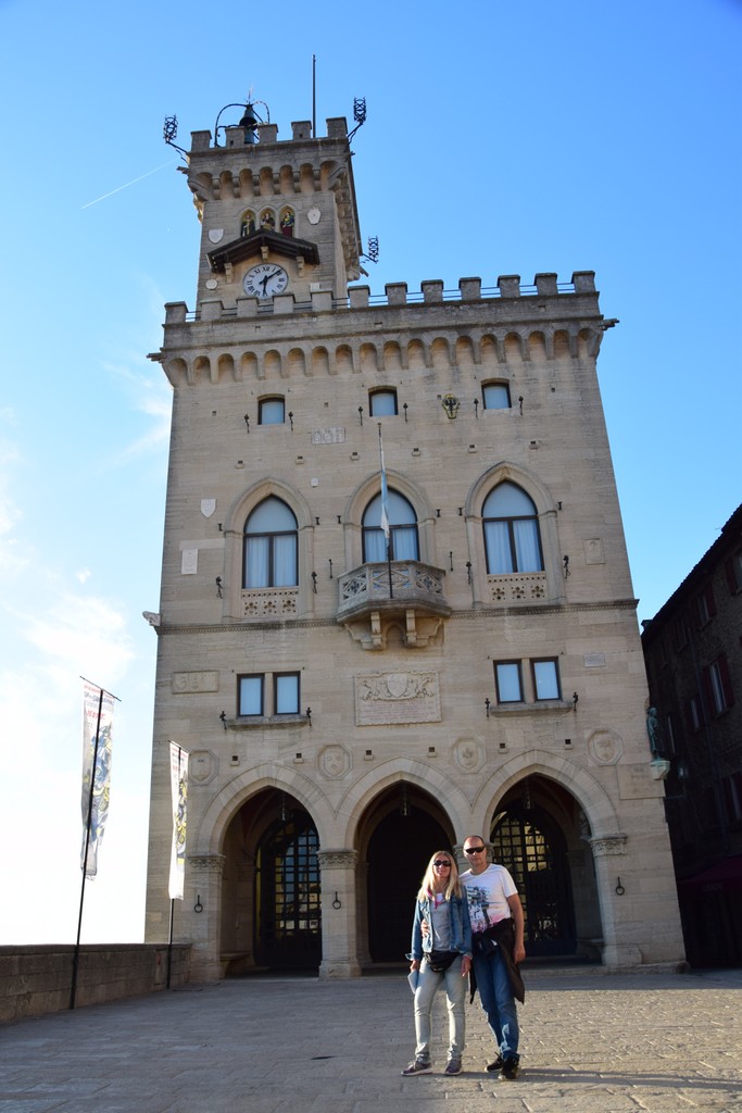 Szybkie pozbycie się bagaży i jedziemy zwiedzać historyczne centrum San Marino. Nie jest to zbyt wielkie miasto, więc dość szybko udaje nam się zobaczyć polecane atrakcje turystyczne. Niestety większość tylko z zewnątrz gdyż już jest po godzinach otwarcia. W miesiącach wakacyjnych są one dłużej otwarte. Gdyby nie korek na autostradzie to więcej udałoby się zobaczyć.