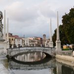 Po wyjściu z bazyliki kierujemy się na Prato della Valle. W przewodniku czytamy, że jest to największy plac we Włoszech i jeden z największych w Europie. Faktycznie robi wrażenie. Dookoła otoczony jest fosą w kształcie elipsy przez którą na wyspę prowadzą cztery zabytkowe mosty. Po środku wyspy znajduje się fontanna.