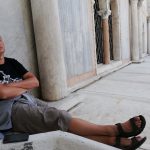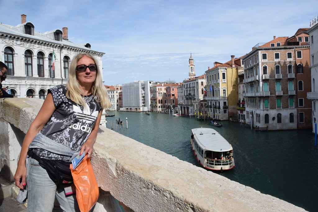 Kolejne godziny upływają nam na niespiesznym przechadzaniu się labiryntem uliczek Wenecji. Odczuwamy już zmęczenie zarówno dniem dzisiejszym jak i dniami poprzednimi w trakcie których oprócz kilometrów pokonanych skutim, wiele kilometrów przeszliśmy zwiedzając różne miejsca. Na brzegu jednego z kanałów znajdujemy przyjemną knajpkę z rozsądnymi cenami. Zostajemy tu na trochę dłużej aby zjeść obiad i odpocząć.