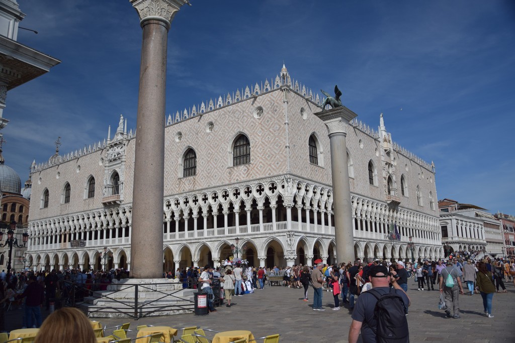 Klucząc po uliczkach czasem trafiamy w ślepe zaułki. W końcu udaje nam się dotrzeć do Piazza San Marco (Plac św. Marka) gdzie ustawiamy się w kolejce do Bazyliki św. Marka. Dość szybko udaje nam się wejść do środka. Wnętrze przepięknie zdobione. Łączy różne style i jest jednocześnie grobowcem św. Marka.