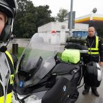 Tym razem mamy ze sobą cały bagaż, więc ciuchów motocyklowych nie ma gdzie schować. Jesteśmy jednak na to przygotowani. Patent o którym przeczytałem przed naszą pierwszą wyprawą polega na przeciągnięciu przez ubrania stalówki i przypięcie tego do skutiego.