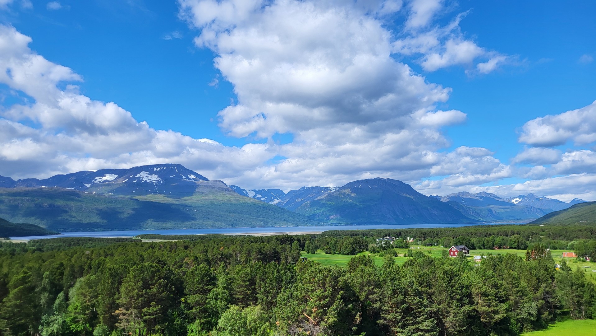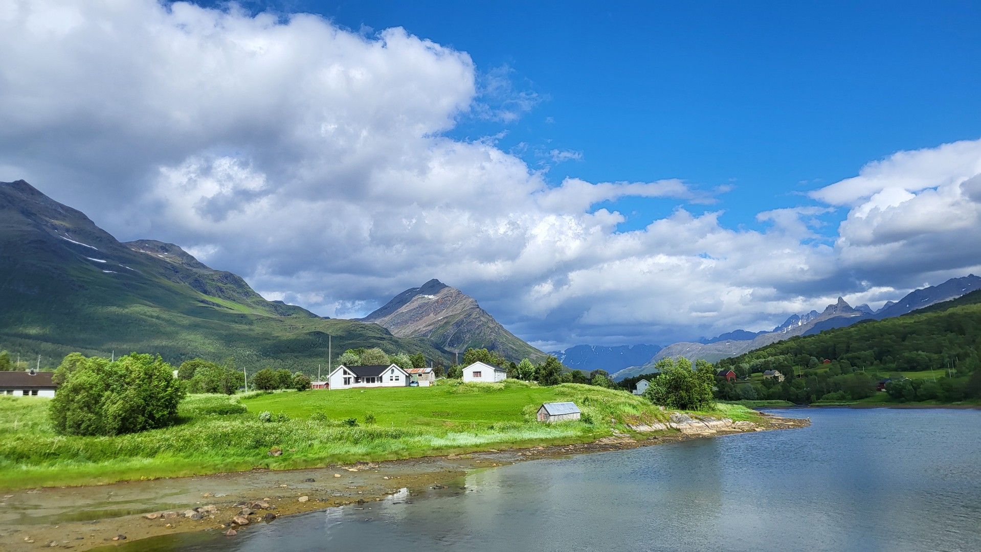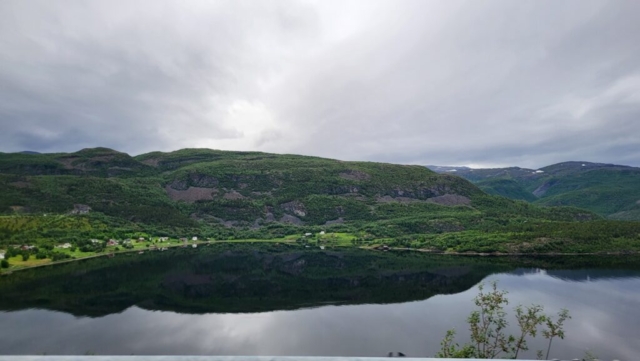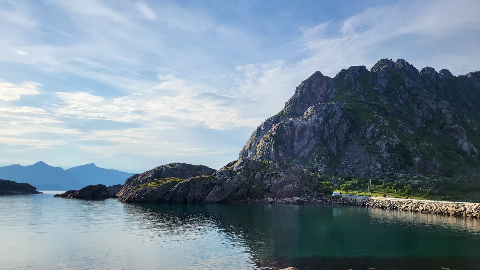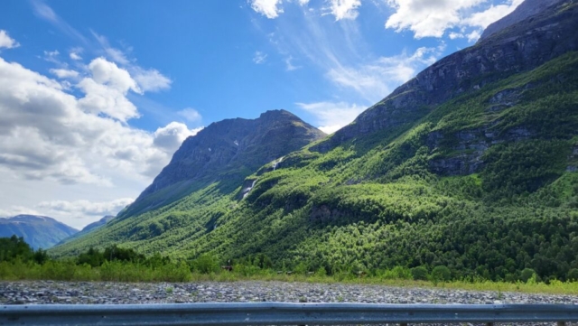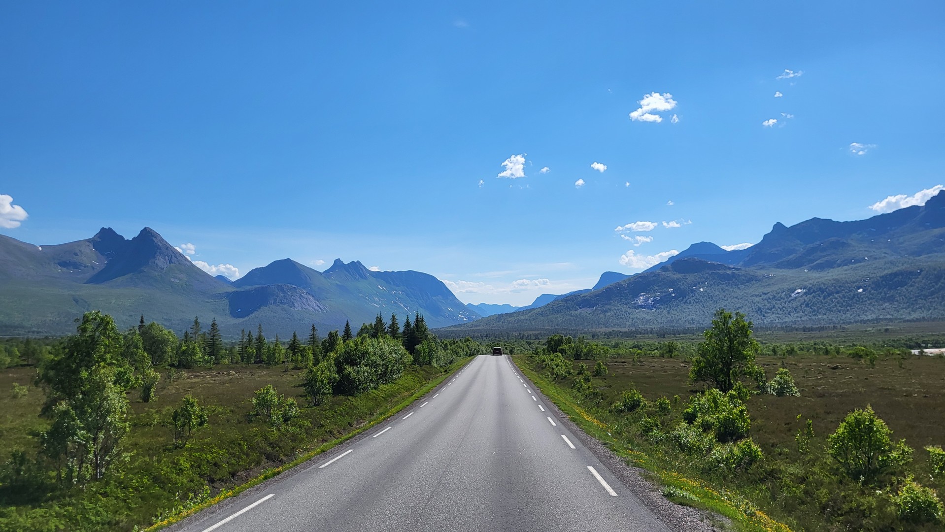 Dziś w planie Tromsø do którego mamy około 4 godzin jazdy. Droga prowadzi wzdłuż fiordu, więc możemy napawać się pięknymi widokami. Gdy świeci słońce, jest całkiem przyjemnie, ale gdy tylko chowa się za chmury, temperatura spada do 12 stopni, a wtedy robi się przejmująco zimno. Do tego ponownie dokucza nam mocny wiatr.