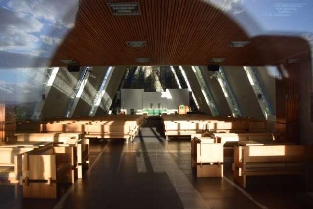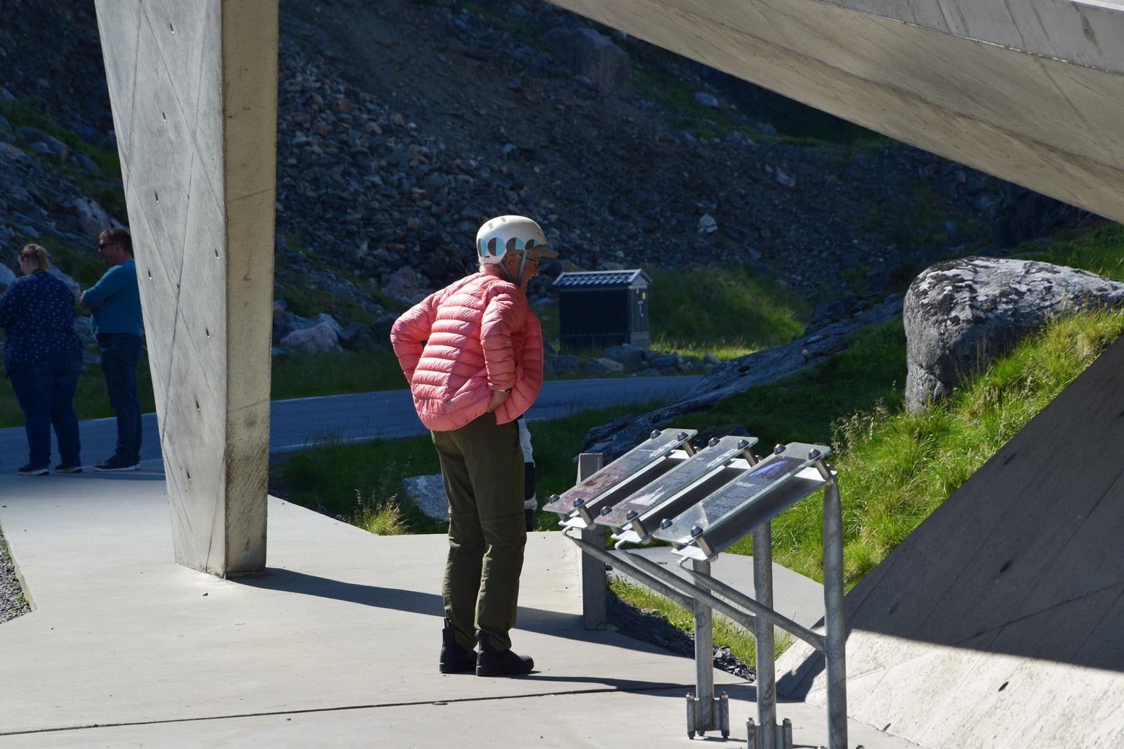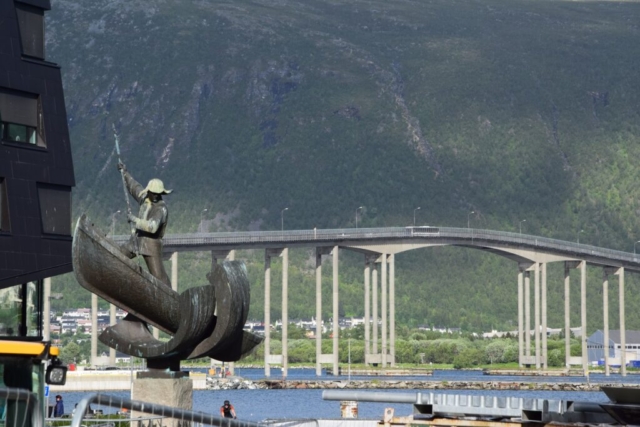 Spacerując po porcie, dostrzegamy po drugiej stronie wody jeden z najbardziej charakterystycznych punktów miasta – Arktyczną Katedrę. Jej architektura inspirowana jest krajobrazem północnej Norwegii. Most, którym wcześniej jechaliśmy, jest teraz zamknięty z powodu „nocnych” prac remontowych, więc musimy nadłożyć sporo drogi i przejechać tunelem, aby wydostać się z wyspy na ląd, gdzie znajduje się katedra. Podobno warto odwiedzić ją podczas jednego z letnich koncertów, które się tu odbywają. Obecnie budynek jest zamknięty, więc znów pozostaje nam oglądanie jedynie z zewnątrz. Nie chcę wyjść na malkontenta, ale ponownie – nie zrobiło to na mnie większego wrażenia…