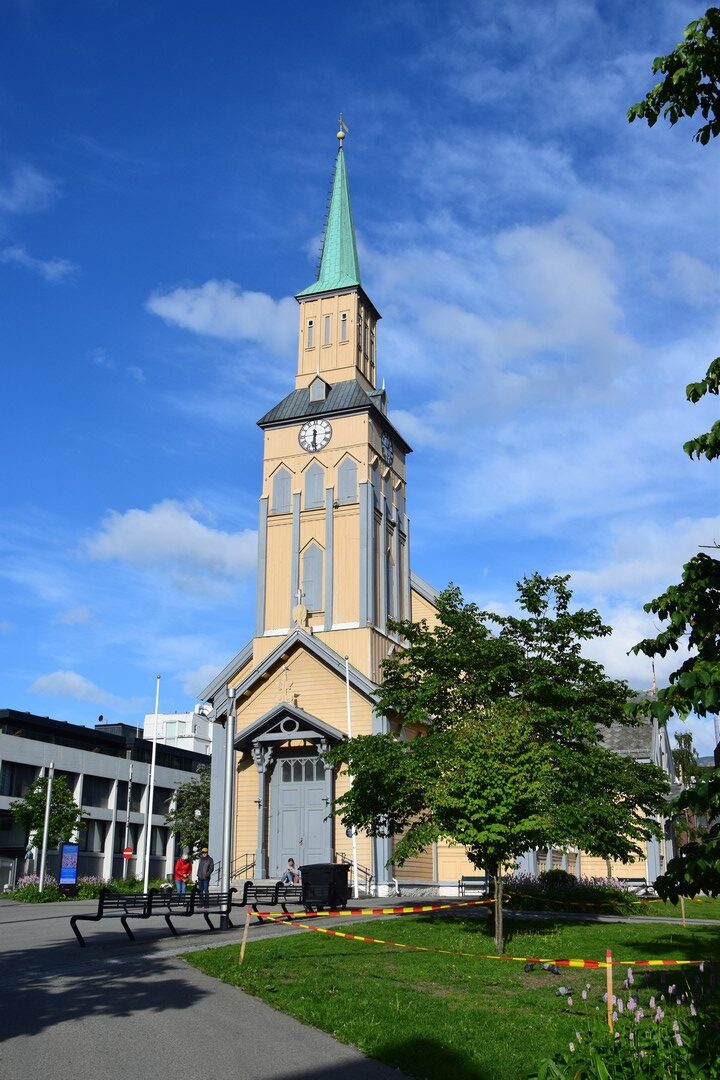 Na początek idziemy zobaczyć jedyną norweską katedrę wybudowaną z drewna. Po drodze trafiamy na inny drewniany kościół – rzymskokatolicką Prokatedrę Naszej Pani w Tromsø z 1861 roku.
