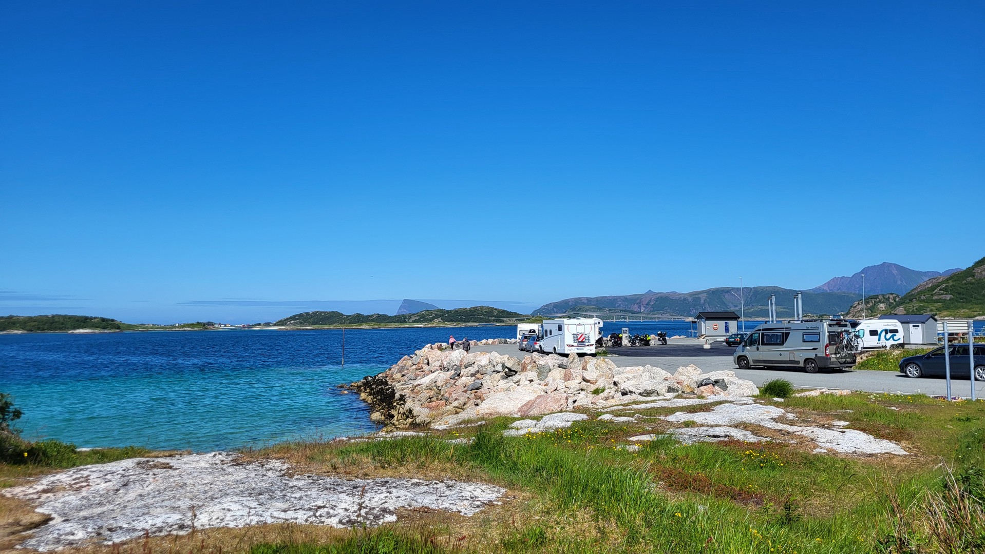 Po dopłynięciu do Andenes mamy jeszcze 10 km do Midnattsol Camping Bleik. Na miejscu okazuje się, że wszystkie hytty są zajęte. Został jedynie apartament za… 2.500 koron – „odrobinkę” za drogo 😉