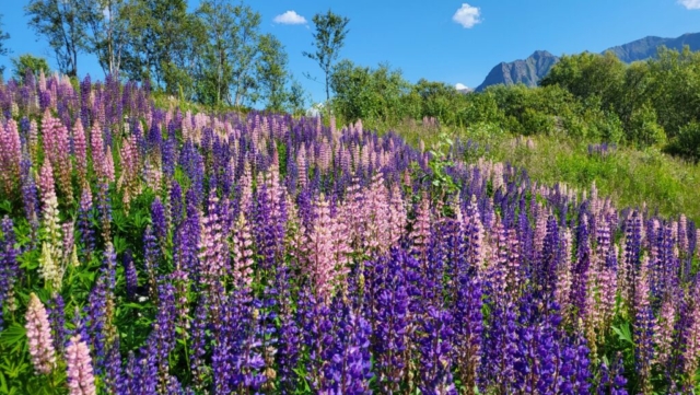W drodze na Lofoty natrafiamy na wzgórze całe porośnięte łubinami. W Norwegii można je spotkać dość często, ale jeszcze nigdy nie widzieliśmy ich w takiej ilości w jednym miejscu. Nie sposób się nie zatrzymać na kilka fotek 😉
