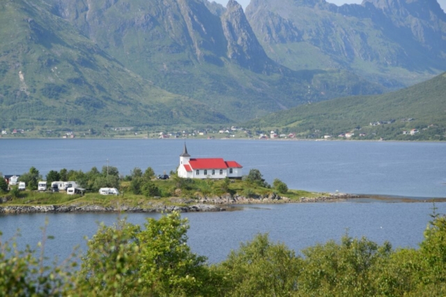 Kolejny przystanek to katedra Lofotów, czyli Vågan Church. To żółty, drewniany kościół zbudowany w stylu krzyża w 1898 roku. Może pomieścić około 1200 osób, co czyni go największym drewnianym budynkiem w północnej Norwegii. Stąd jego przydomek – katedra Lofotów. Wstęp do środka kosztuje 50 koron.