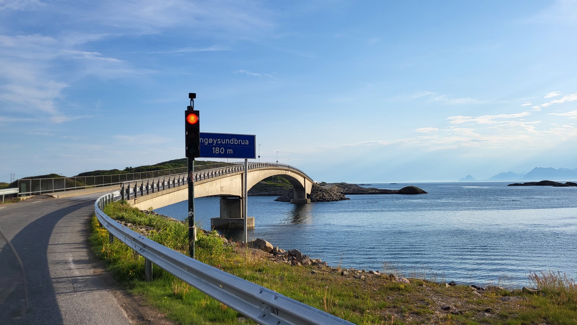 Po zjechaniu z Andøyi mamy przed sobą 113 km do mostu Raftsund, przez który wjedziemy na Lofoty. Most sam w sobie robi wrażenie, więc zjeżdżamy w boczną drogę, by zobaczyć go w całej okazałości.