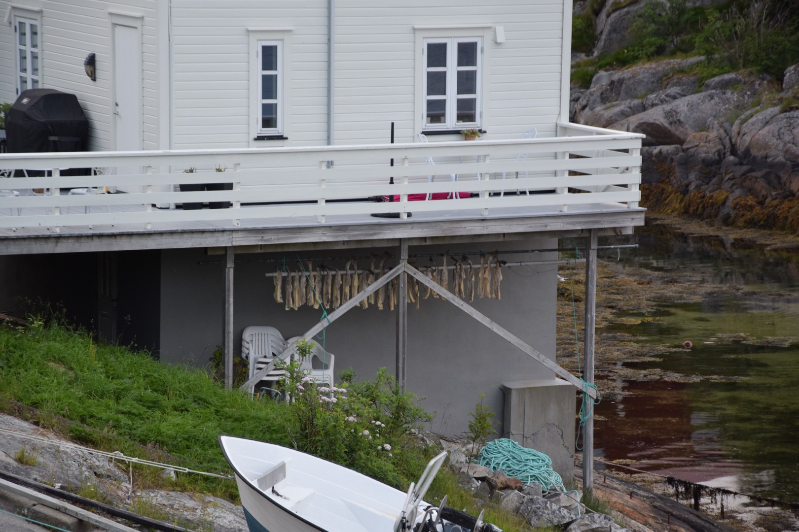 Henningsvær ma zdecydowanie więcej dawnych drewnianych domów niż Tromsø. Szczególnie te położone w pobliżu portu wyglądają uroczo, otoczone wodą i górami. Zapewne w promieniach słońca prezentowałyby się jeszcze lepiej, ale nie było nam dane tego zobaczyć…