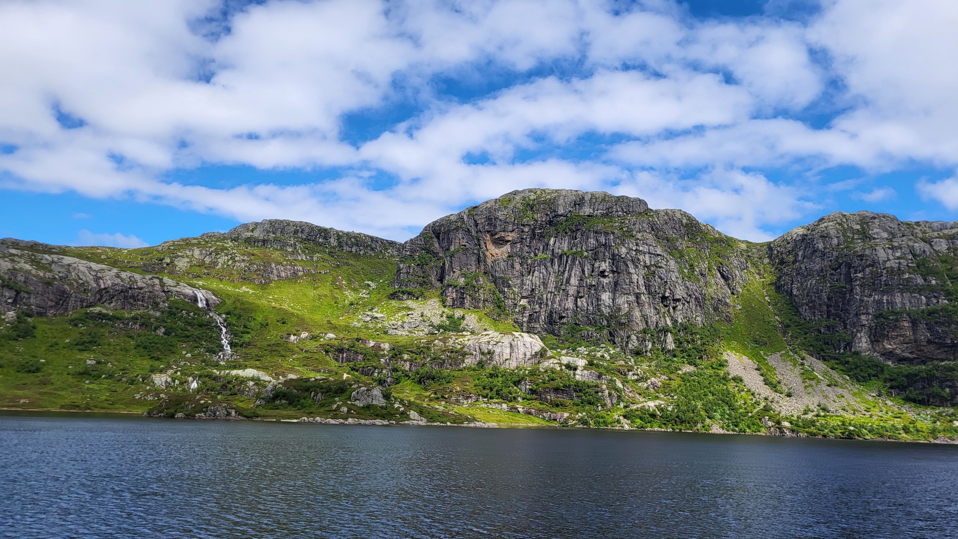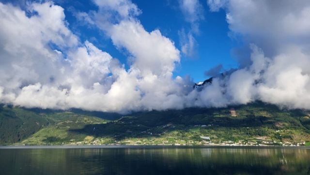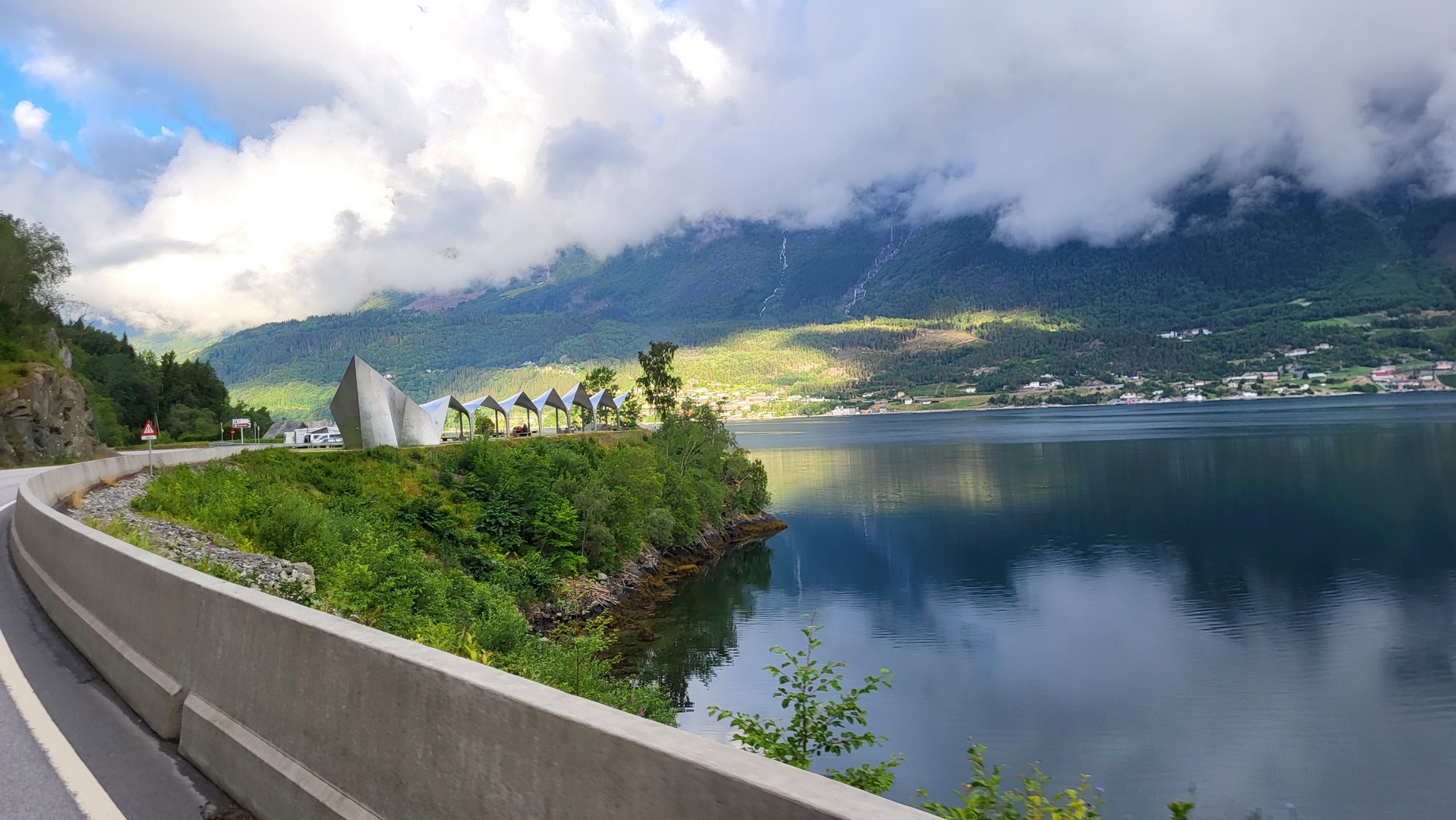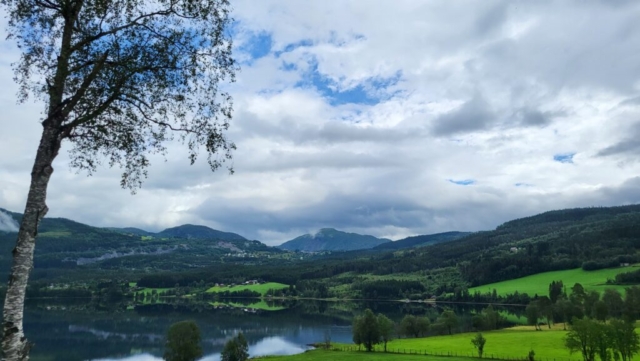 Dzień zaczyna się całkiem ładnie – słońce próbuje się przebić przez chmury, a my liczymy, że Norwegia pożegna nas pogodnie.