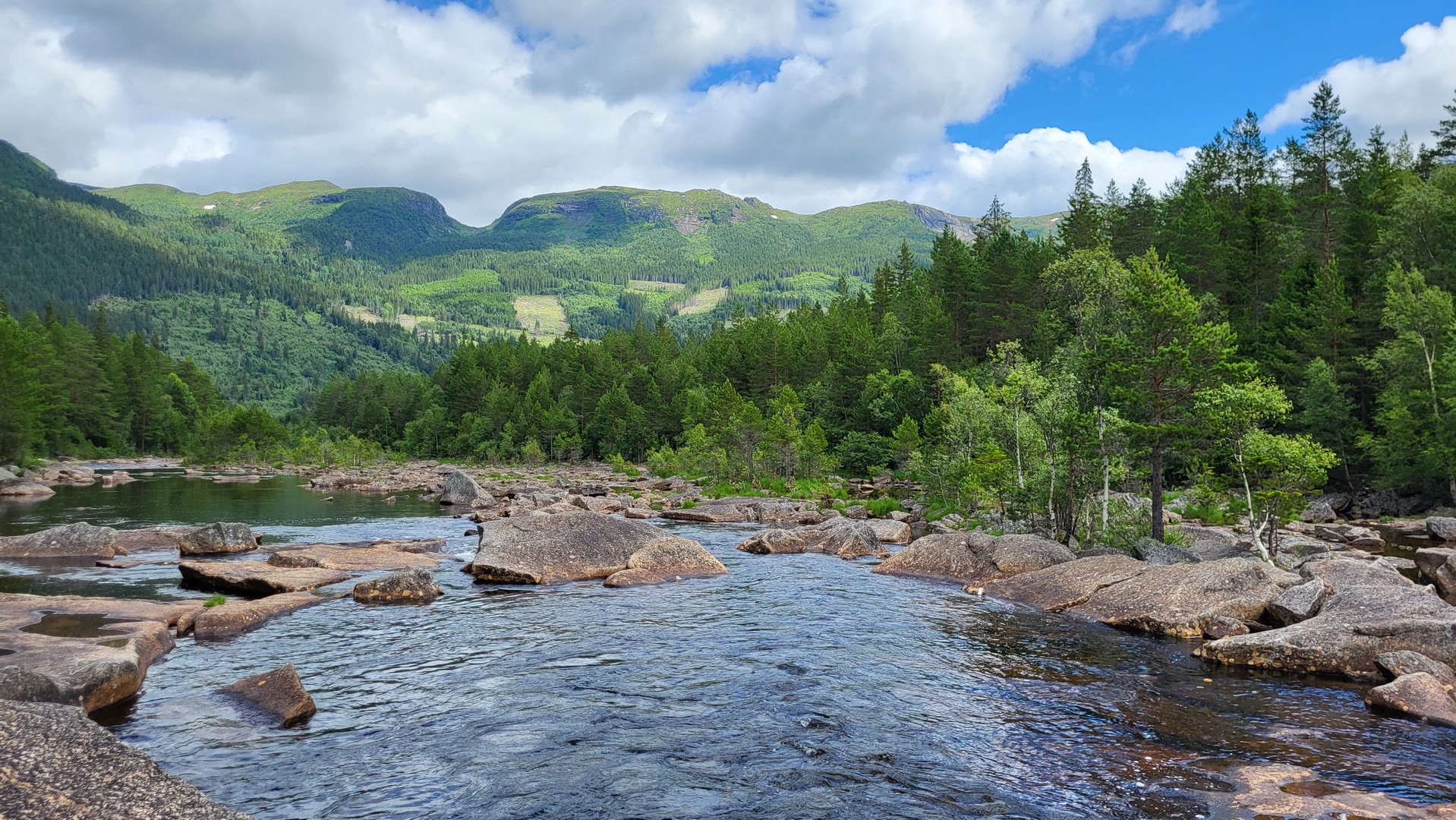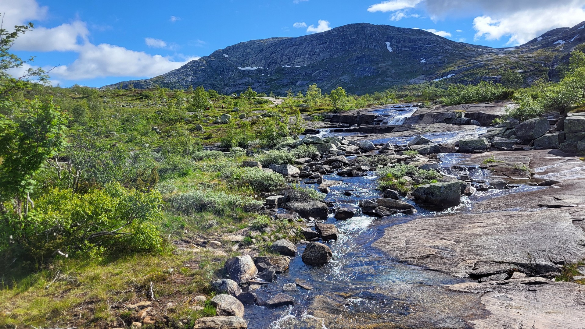 Na pożegnanie Norwegia serwuje błękitne niebo – w końcu! Niestety, poranek bardzo wilgotny, więc nasz plan na wysuszenie namiotu niezbyt wypalił… cóż, mamy słońce, a to się liczy.
