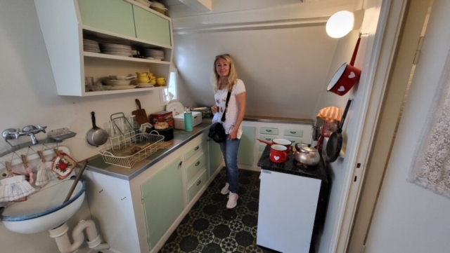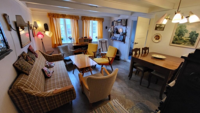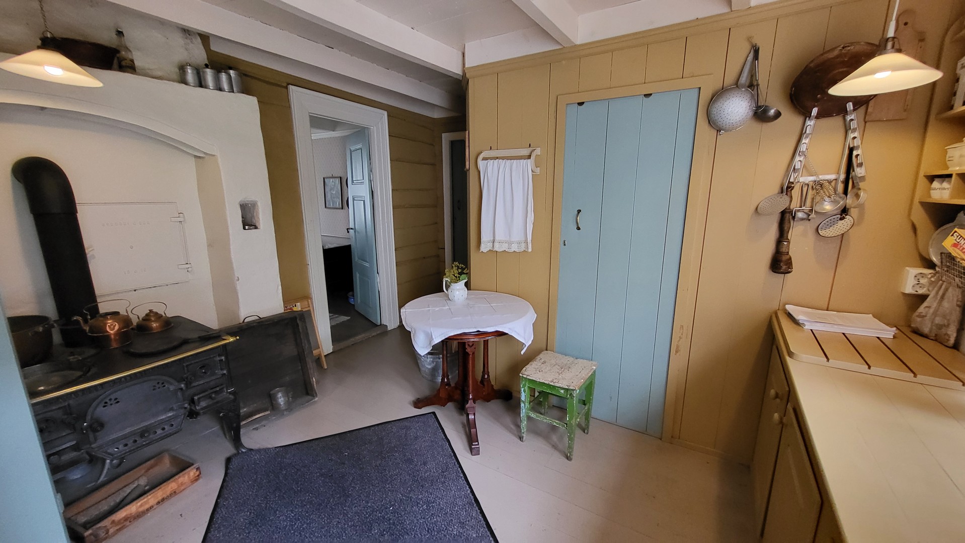 Z muzeum przechodzimy do domu przy Øvre Strandgate 90, w którym mieszkali niegdyś robotnicy fabryki. To miejsce absolutnie nie przypomina typowego muzeum – raczej żywy dom. Nie ma żadnych sznurków, barier czy zakazów. Wszystko można dotknąć, wszędzie zajrzeć. W kuchni – otwieramy szafki i widzimy talerze, garnki, jak u nas w domu. Człowiek ma wrażenie, że gospodarze wyszli na chwilę po zakupy i zaraz wrócą.
