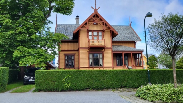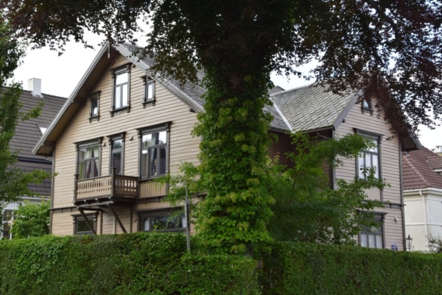 Wracamy w pobliże centrum Stavanger, gdzie znajduje się willa Breidablikk. Wzniósł ją w 1881 roku jeden z najbogatszych ówczesnych mieszkańców, Lars Berentsen, kupiec i armator. Swoim stylem przypomina nasz „Świdermajer”. W 1965 roku willa została przekazana miastu, które otworzyło w niej placówkę muzealną. W środku nie dokonano zbyt wielu zmian i można podziwiać oryginalne meble, bogate żyrandole i piece ceramiczne. Tyle udało nam się przeczytać w przewodniku ale obejrzeć wnętrz nie możemy, bo niestety natrafiamy na zamknięte drzwi 🙁